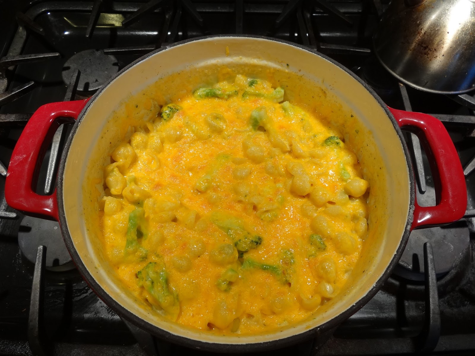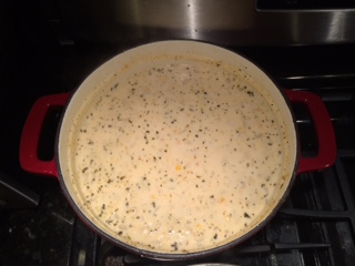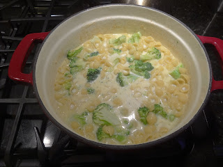 Here is the pasta and the broccoli (added a few minutes into cooking) boiling away in the milk.